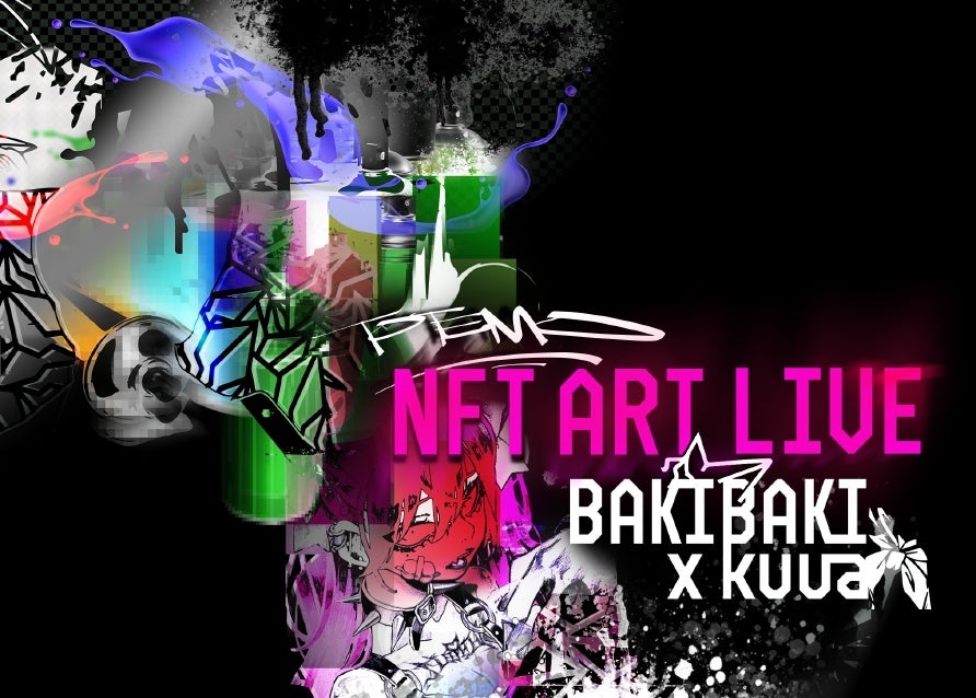 『TOTEMO NFT ART LIVE』では、2人のコラボレーション作品を含むNFT作品6点をオークション形式で販売、さらにBAKIBAKIとKuuaの2人による共同のライブペイントも行われます。